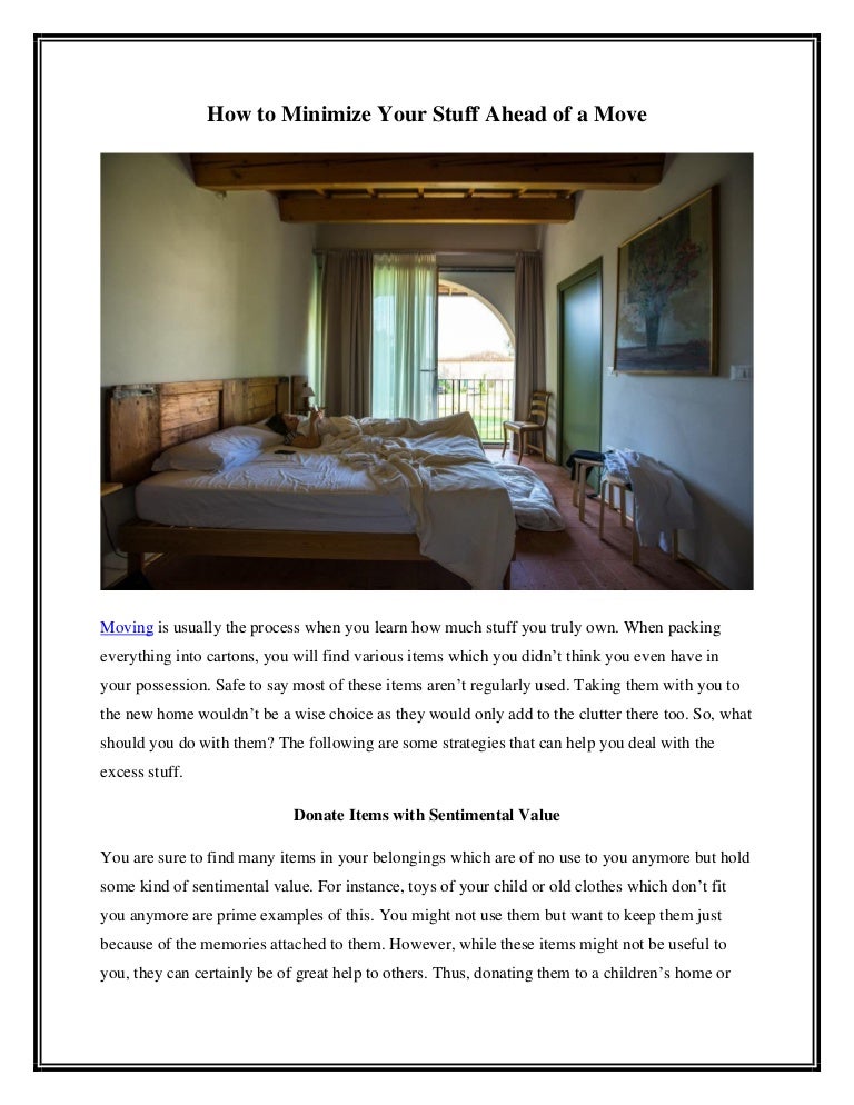 The process of going through all of your things which sounds hard but is really worth it quickly lets you see what you love to do and what youre passionate about. Simplify the process by focusing on one category at a time. How to Minimize Your Stuff Ahead of a Move How to Minimize Your Stuff Ahead of a Move Moving is usually the process when you learn how much stuff you truly own.