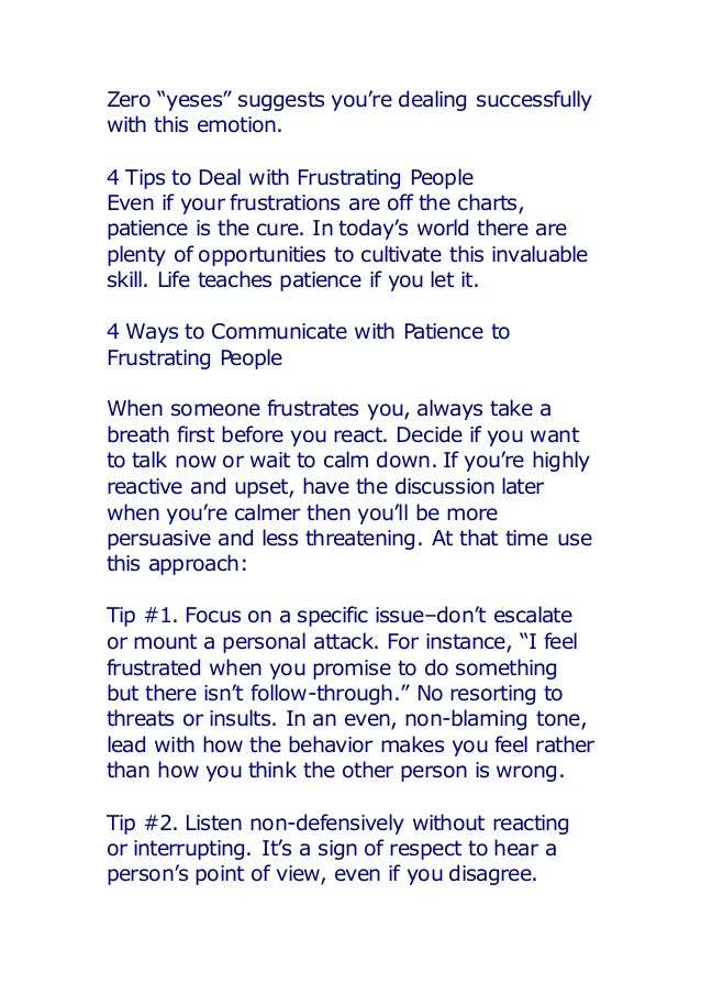 How to deal with frustrating people. Never ask God for patience because Hell give you plenty of chances to wait. 10 Ways to deal with frustration 1. The first step to dealing with frustration is to notice that youre feeling.