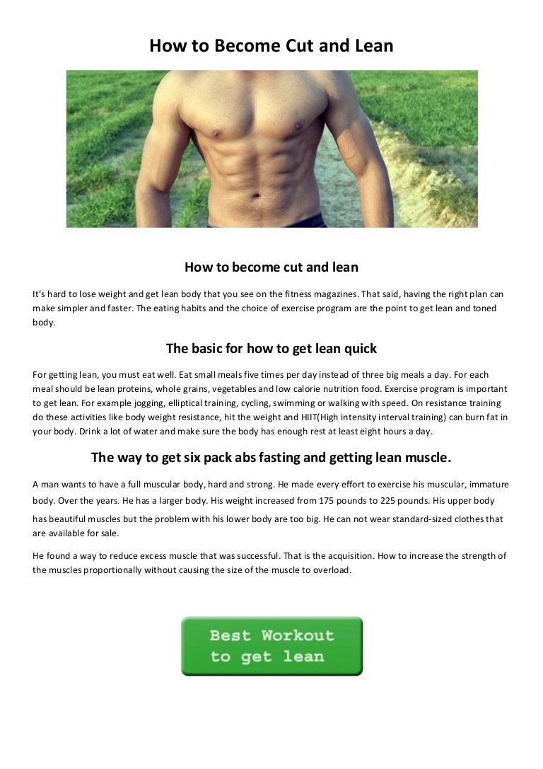 To get lean you may want to remove some carbohydrates from your diet or add a little more cardio. Workouts 1 and 3 each week focus on your upper-body muscles while workouts 2 and 4 are total-body sessions. To do this effectively you need a good base of fitness.