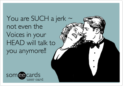 You Are Such A Jerk 7e Not Even The Voices In Your Head Will Talk To You Anymore Cry For Help Ecard
