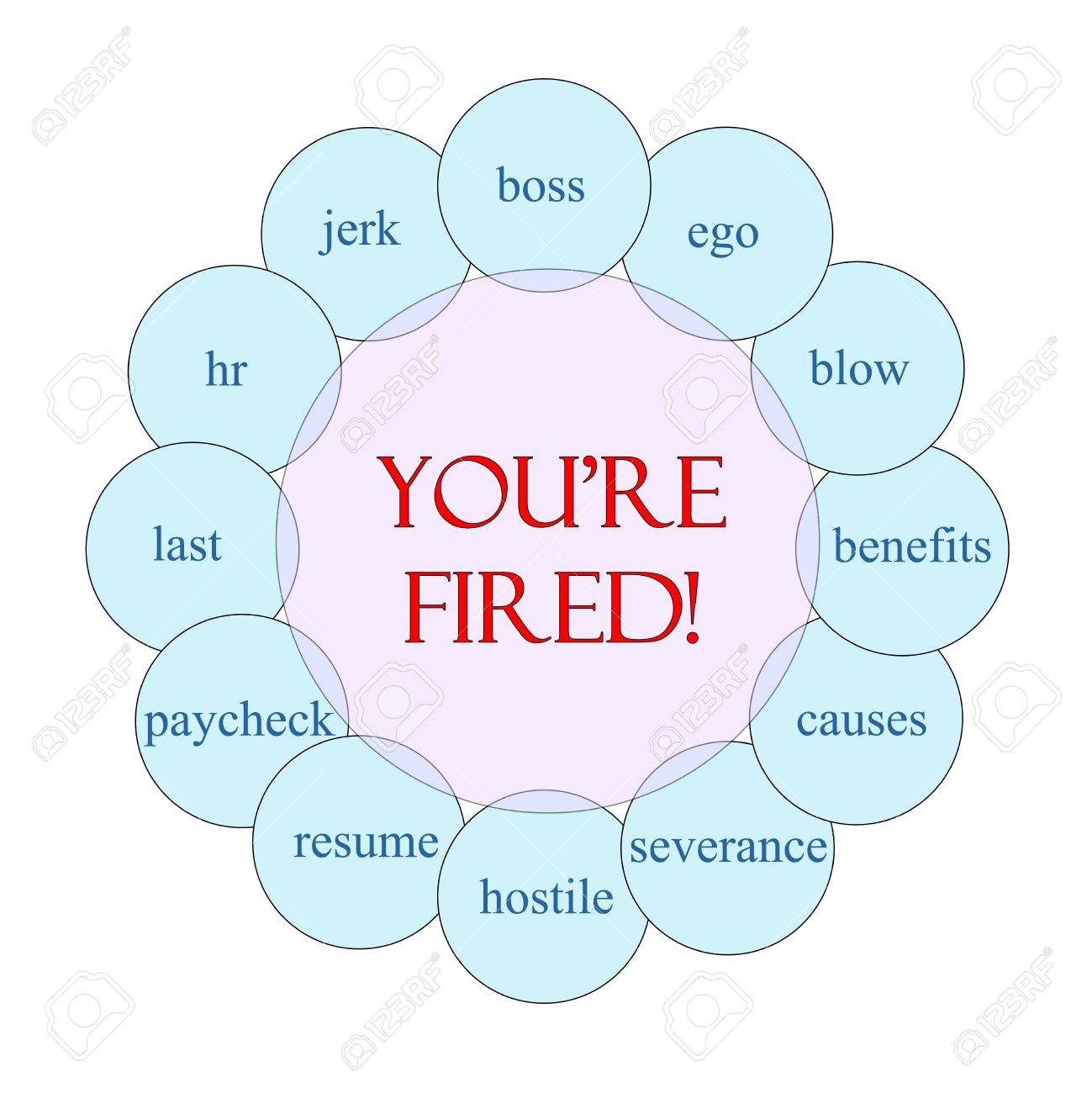 You Re Fired Concept Circular Diagram In Pink And Blue With Great Terms Such As Jerk Boss Hr Severance And More Stock Photo Picture And Royalty Free Image Image 17685748