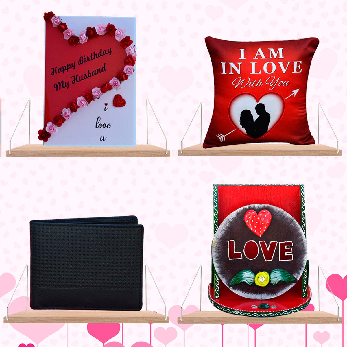 Saugat Traders Gifts For Husband Genuine Leather Men S Wallet Cushion Cover With Filler Wooden Mobile Stand Handmade Greeting Card Special Romantic Birthday Gift Amazon In Bags Wallets And Luggage