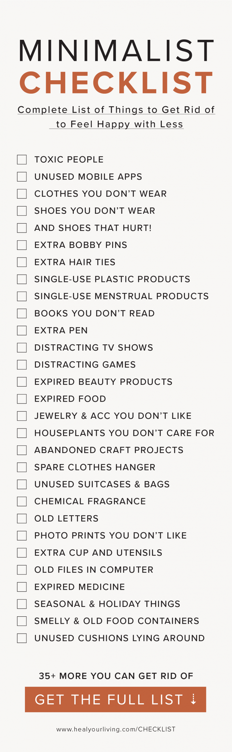 Sit down with a pen and paper or open up a Word or Google doc on your computer and jot down everything. Sort of minimalism but much less extremeInstagram.