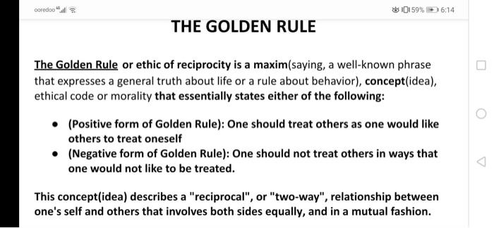 Ooredoos 10159 6 14 The Golden Rule The Golden Rule Chegg Com