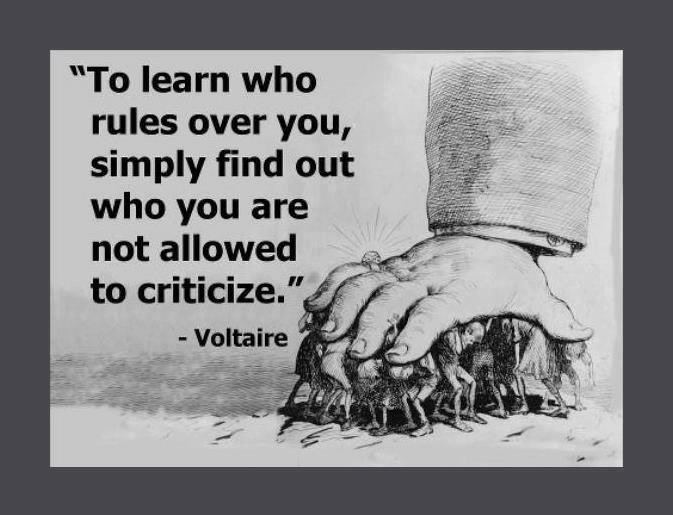 Posted in Quotes Quotes images Previous Next Search. So apparently this wasnt said by Voltaire and it doesnt apply to modern societies. To learn who rules over you simply find out who you are not allowed to criticize-Voltaire.